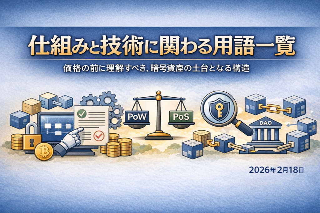 このページでは、暗号資産を支える仕組みや技術に関する用語を一覧で整理します。