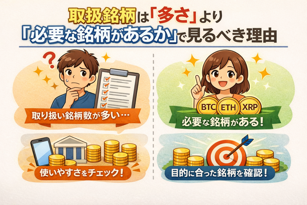 暗号資産の取引所を比較するとき、つい目に入りやすいのが「取扱銘柄数」です。