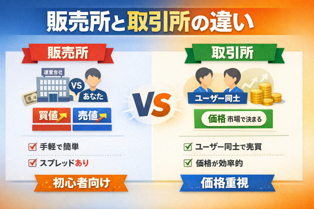 暗号資産を購入しようとすると、「販売所」と「取引所」という二つの形式が表示されます。