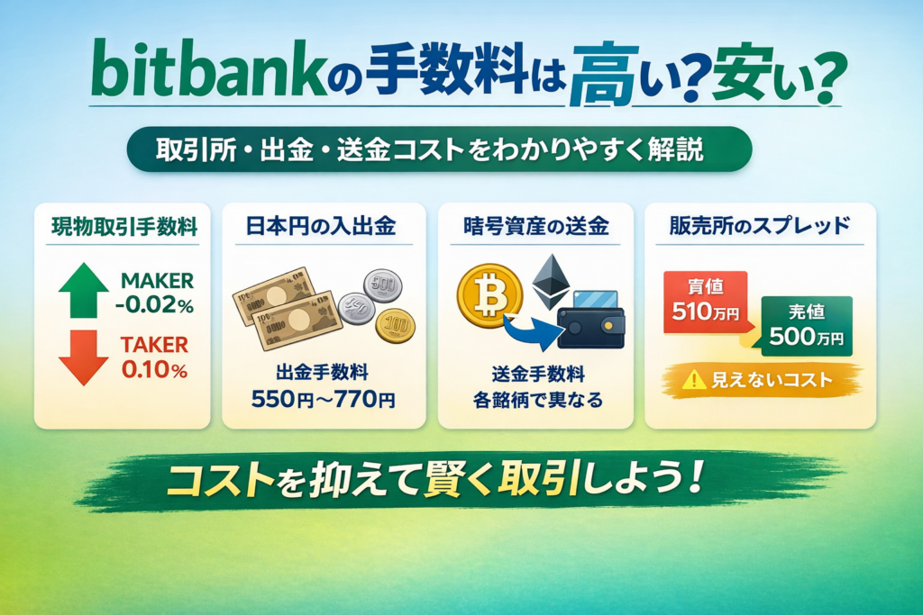 bitbank自体が高コストというより、使い方によって差が出やすい取引所と考えたほうが正確です。