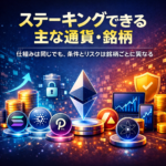 ステーキングできる主な通貨・銘柄|仕組みは同じでも、条件とリスクは銘柄ごとに異なる