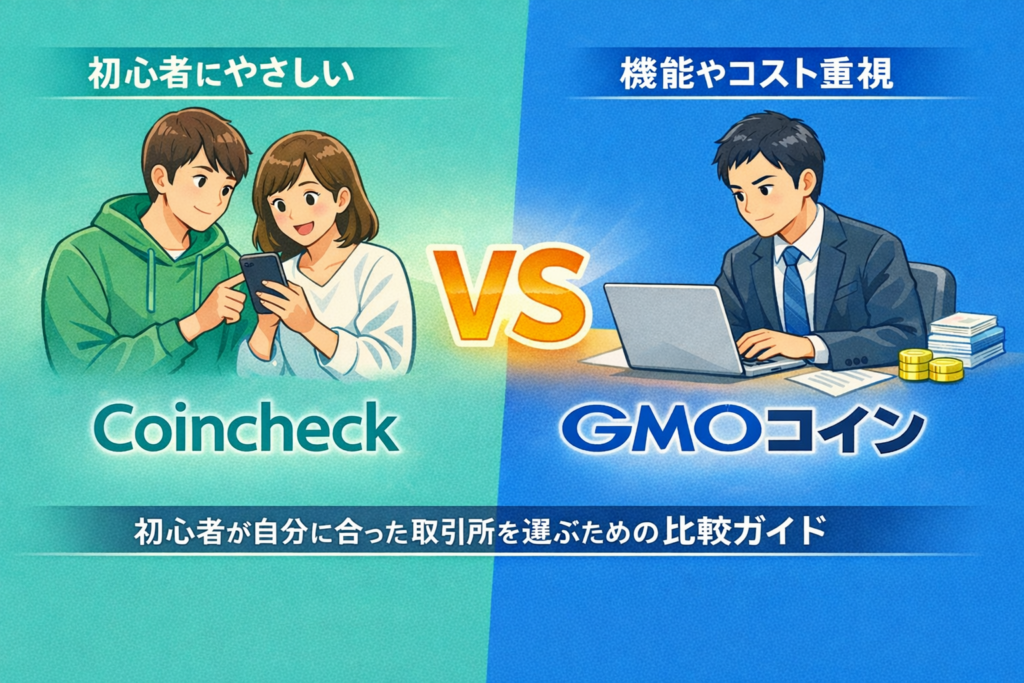 この記事では、CoincheckとGMOコインの違いを初心者にもわかりやすく整理しながら、それぞれの強みと注意点を比較していきます。結論からいえば、最初の一歩をシンプルに踏み出したい人にはCoincheckが選びやすく、機能やコスト面まで広く見たい人にはGMOコインも有力です。