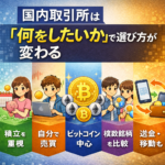 最初は販売所のほうが入りやすいですが、コスト重視なら取引所を使えるようになったほうが有利です。