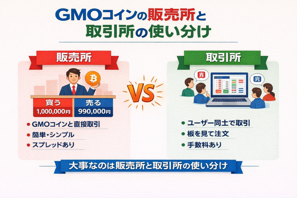 GMOコインの販売所と取引所の違いは、初心者ほど早めに理解しておいた方がよいポイントです。